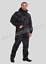 Костюм мужской состоит из куртки и брюк. Куртка удлиненная прямого силуэта, с застежкой на тракторную молнию с ветрозащитным клапаном на липучках "Velcro", воротник-стойка. На куртке два нагрудных кармана с косым входом на молнии и два нижних накладных кармана с клапанами и застежками на липучку "Velcro". Куртка имеет капюшон с возможностью регулировки объема . На рукавах куртки расположены карманы с застёжкой на молнию.